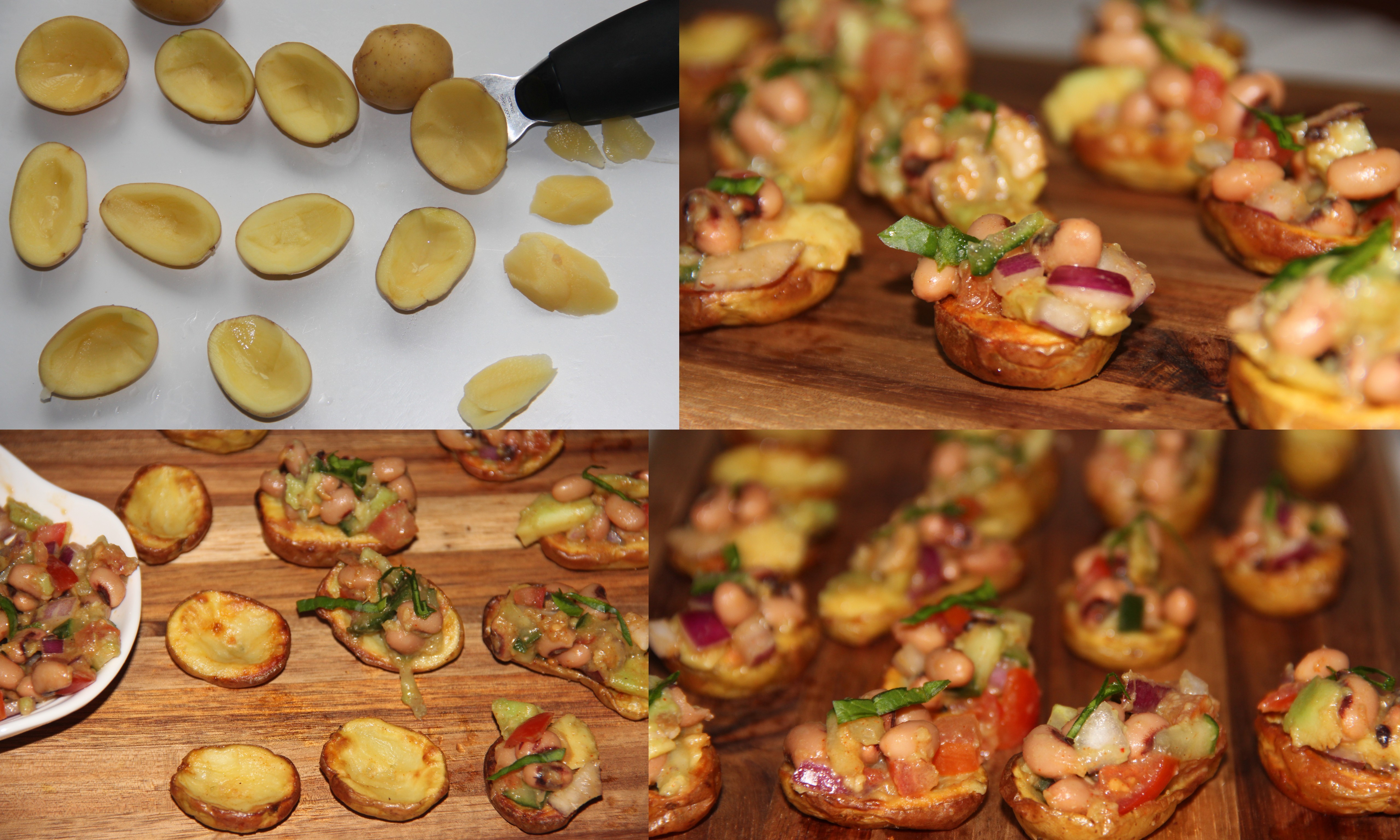 Roasted Babypotato skins loaded with avocado black eye bean – Vegan