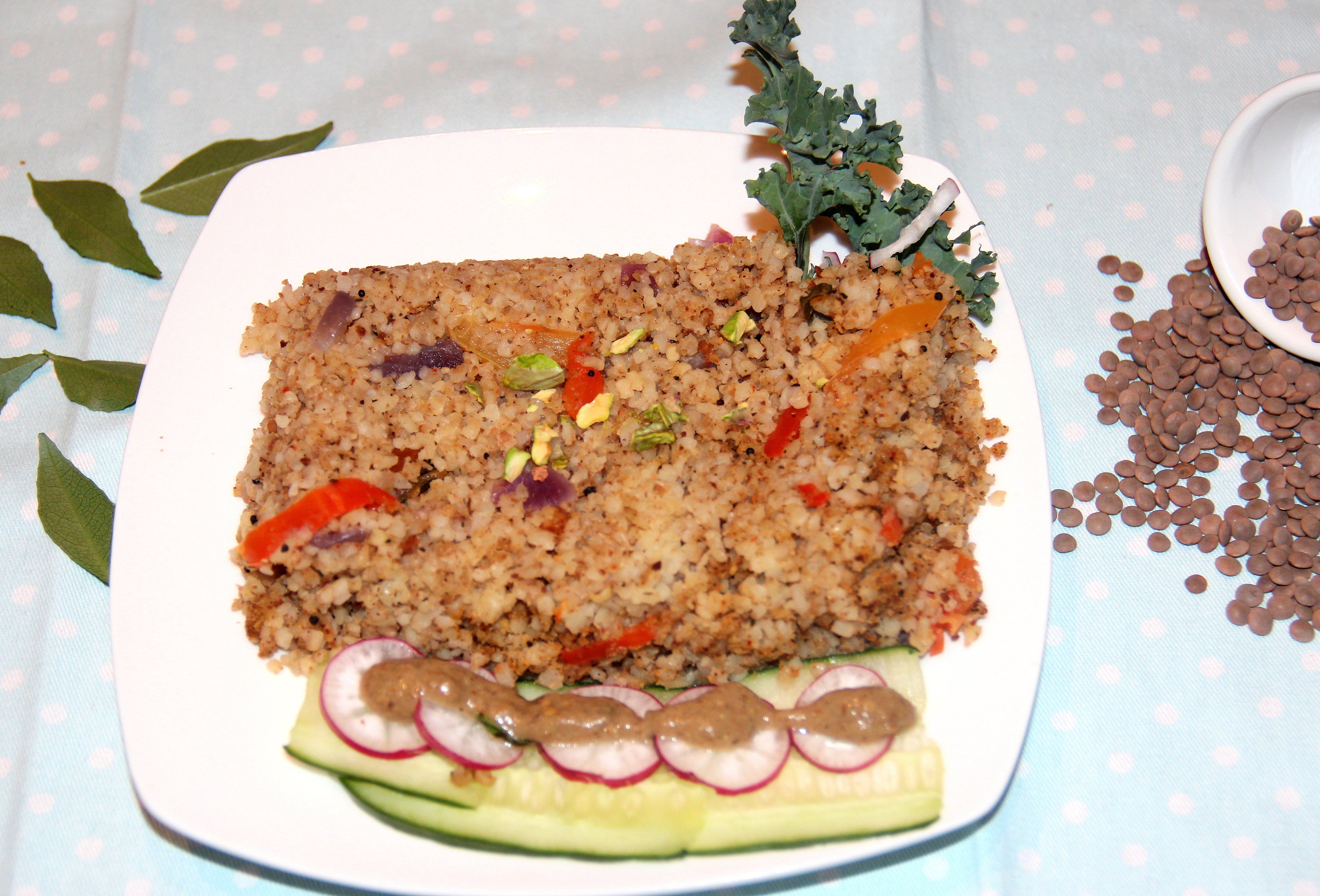 Roasted brown lentils capsicum bulgur